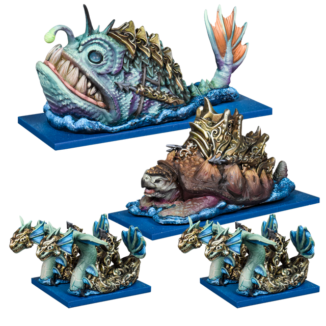 In their natural environment, the armies of the Trident Realm have adapted to the intrusion of land-dwellers upon their waters by training the giant creatures of the ocean depths in the art of warfare. Sometimes total destruction of the enemy is called for, but other times, precious resources and cargo need to be safely captured, and so cohorts of naiads are trained in boarding actions and other special operations.