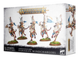 The kit is comprised of 89 plastic components, with which you can assemble 5 Hurakan Windchargers, with options to build one as a Seneschal unit leader and one as a Standard Bearer. They are supplied with 5x Citadel 60mm x 35mm Oval Bases.