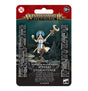 This multipart plastic kit builds a Scinari Enlightener, a skilled master of mystical wisdom. This mage is posed floating above the ground, robes billowing behind them, with the burning Rune of Enthlai held in one hand. They wield a long, elegant crescent staff that can sear enemies with bolts of light, and have an Enlightener blade strapped to their back, ready to deliver a flurry of expert blows in combat. The kit includes a choice of two heads – one helmeted with an impressive crest, and a bare head with long braided hair and a delicate diadem.