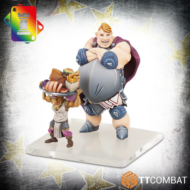 Sir Cumference enjoys eating even more than wrestling, this passion can be seen in his support abilities. Gormand allows him to grant Endorsements to his team, and then his Vow of Charity helps keep the rest of the team in the fight with a little edible donations. The Crowd show support to this gluttonous knight, with his Crowd Pleaser Showered in Snacks which further restores stamina to all wrestlers nearby.