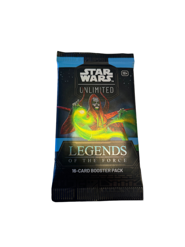 Expand your collection with Legends of the Force booster packs! In each pack, you’ll find 16 cards to add to your collection, including approximately 9 common cards, 3 uncommon cards, 1 rare or legendary card, 1 leader, 1 base/token, and 1 foil card.