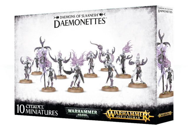 • This multi-part plastic boxed set contains the components needed to make 10 Daemonettes of Slaanesh. This finely detailed kit contains a host of extra parts and accessories, enabling you to assemble your Daemons in a large variety of ways. Supplied with 10 Citadel 25mm Round bases.