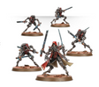 The box contains 5 different, cybernetically augmented gasmask-clad Sicarian Ruststalker heads, covered in sensors and data-gathering devices to further the quest for knowledge. More machine than man now, their bodies are encased in pressurised armour. An impressive array of armament options include two transonic blades each, or a loadout of chordclaw, transonic razor and grenade pack, making a total of twenty-five included weapon parts. Their princeps includes a prehensile dataspike.