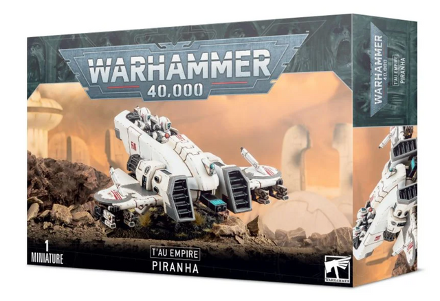 This boxed set contains 1 multi-part plastic TX4 T'au Piranha with a variety of optional parts and weapons.